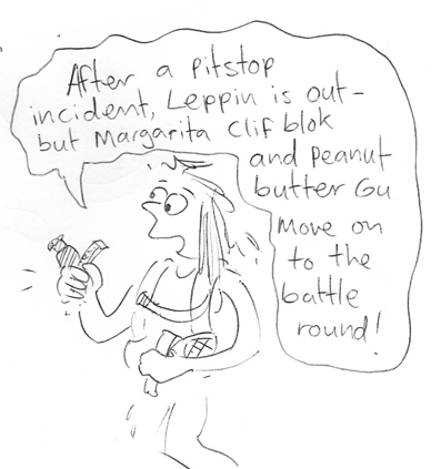 My Spyridon FiveFingers are going great guns, despite much freshly graded gravel and a good range of terrain. I was warned that I’d probably want to change to thicker ‘normal’ shoes at half way and accordingly spent half an hour searching the house for a matching pair that had laces. It’s been months since I’ve used anything other than fives, but better safe than sorry? Luckily my feet were all good and the old shoes stayed in the drop bag.