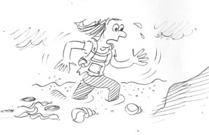 my teeth – you’re not going anywhere, precious carbs! Finally we made it, and put up the tent (thanks to Fiona for that). Time for a swim! Alba had a big freak out at the sea, and a further freak out at me being immersed in it. Poor child. I refrained from mentioning the imminent abandonment.