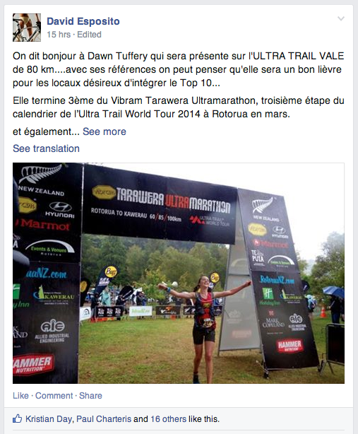 I’ve been invited too (from Tahiti) and ran with Ruby (behind …far behind) last year on the 50k, made the same wrong turns(!).