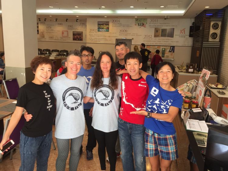 We flew over a pretty epic two-hour lightning storm on the way, but I arrived safely in Taipei on Thursday morning and explored the city a little by foot, bike (pretty wild on the car and scooter-filled roads) and metro before catching up with the rest of the NZ team in the afternoon – Andrew, Bryan, Emma, Fiona, Graeme, Wayne and myself. We also met our volunteer student helpers Andy, Krystal, and Aeolus. The support and encouragement from the volunteers is one of the things people love about this race, and we were about to see it in action. They happily managed our various fiddly food requests for tea (delicious) and made us very welcome.