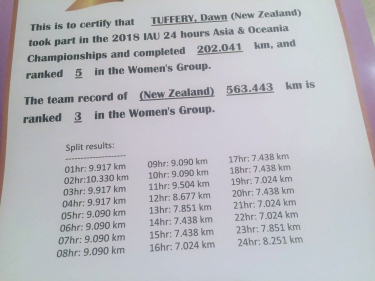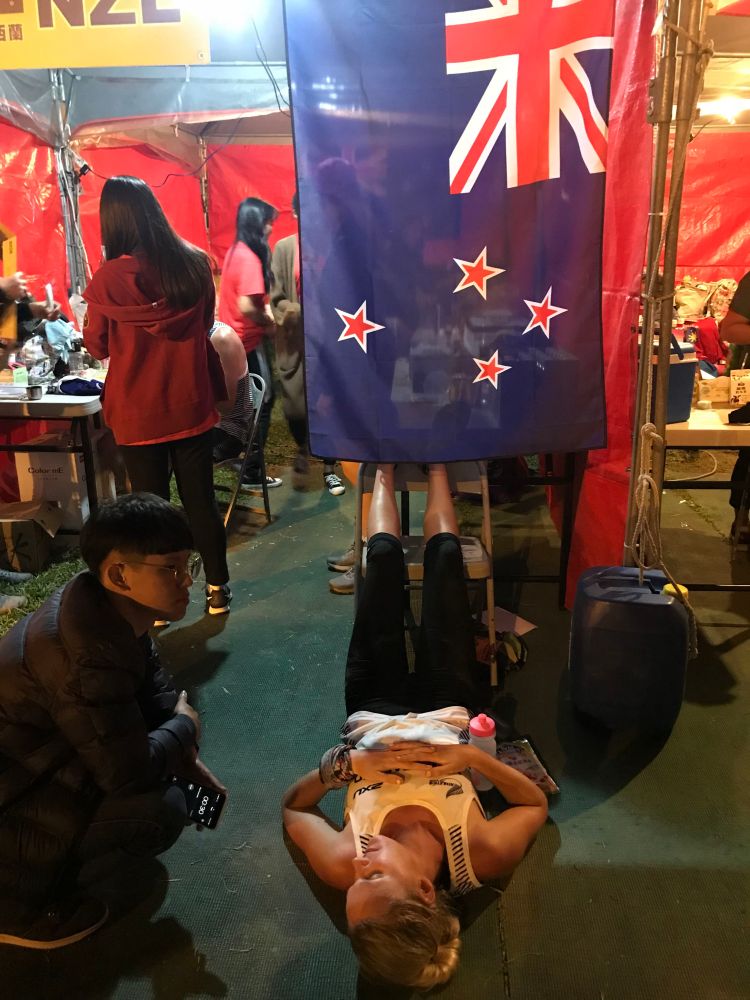 But in October I got this email: ‘On behalf of the Selection Panel, I would like to congratulate you on your selection to represent New Zealand at the IAU Asia/Oceania 24HR Championships’. This event would happen in 6 weeks, at Soochow University in Taipei. Fantastic! You don’t say no to that. Small matter – I could literally not run round the block that evening, thanks to the injury niggling from doing the downhill leg at the Takahe-Akaroa relay a few days before. But hey, six weeks to fix that!